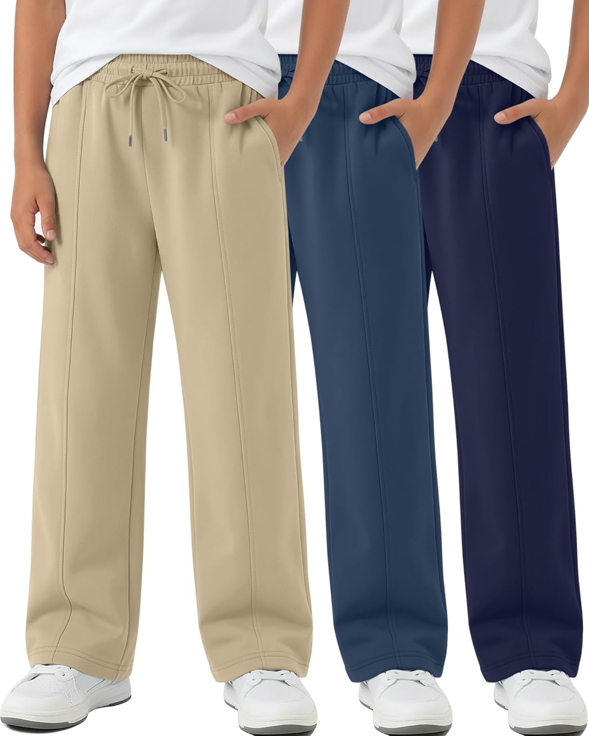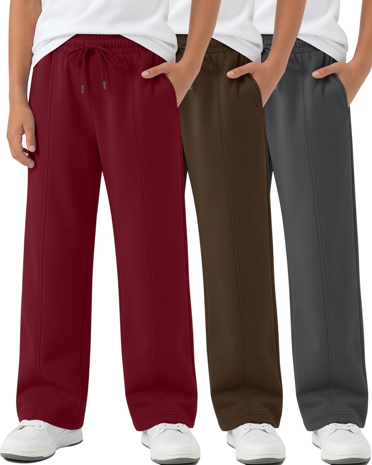 Features: Versatile occasions: These baggy pants for boys work for different moment, such as school recess, soccer practice, weekend errands, or lazy movie at home. Caring tips: To keep these boys drawstring joggers, please machine wash cold with like colors, tumble dry low, and avoid bleach or ironing. Specifications: Material: 100% Polyester Package includes: 3 x Boys Wide Leg Sweatpants Notes: Manual measurement, please allow slight errors on size. The color may exist a slight difference due to different screen displays. Please do not wash our products with other clothes, and bleaching is not allowed