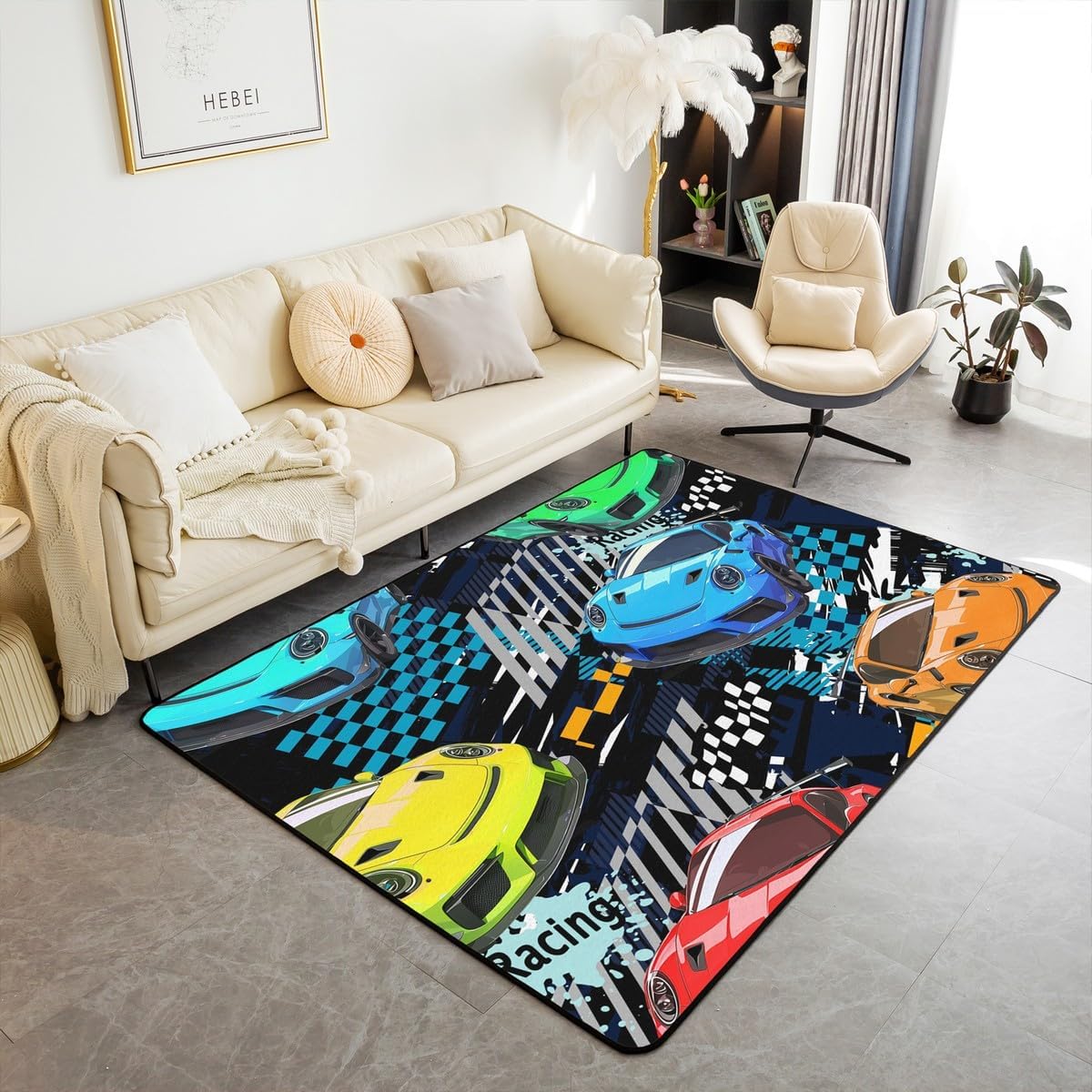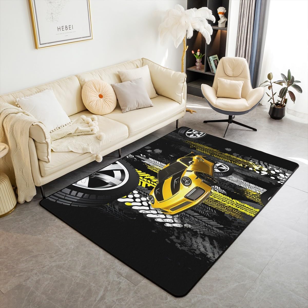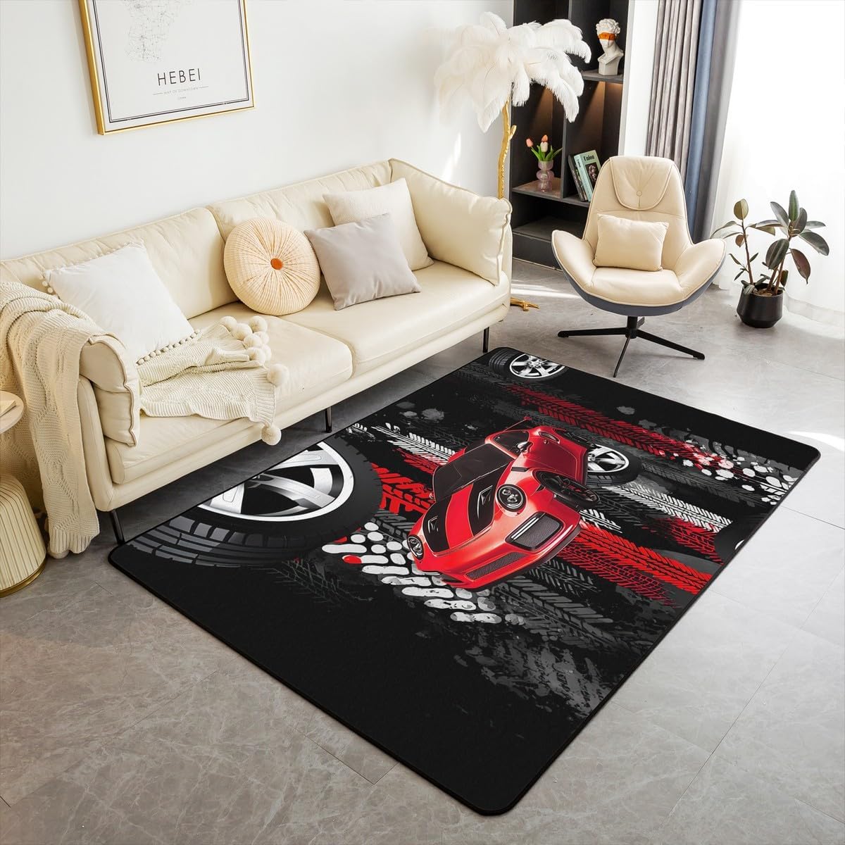 Tips: The carpet will arrive with temporary creases, you can repeat the process several times by rolling the carpet in the opposite direction of the creases and then spreading the carpet flat and pressing the edges of the roll with a heavy object to restore the carpet to its original state. We recommend using an iron to iron carpets at low temperatures more quickly Size: 2 sizes can be chosen of our rugs dimension: 4'11" x 3'3" 100cm x 150cm x 1cm. 6'6" x 4'11" 150cm x 200cm x 1cm. Material: Made with 100% polypropylene. No chemicals used, No dye substance harming the health of you or your family. The rubber non slip design on the bottom of the area rug for bedroom is the safest protection. One piece is enough,you don't need to buy additional non slip carpet pads Machine washable: Soak in cold water for 10 minutes,then folded twice and put into the washing machine on gentle cycle, and then dry in the air.Do not use chlorine or bleach Features: With many different patterns to choose from, you will easily find rugs to coordinate with your decor. Our rug is widely used as the floor rug as well as a play mat, kitchen rug, bedroom rug, laundry mat, living room mat, office rug etc. Notes: Due to the light and screen setting difference, the item's color may be slightly different from the pictures Please allow slight dimension difference due to different manual measurement