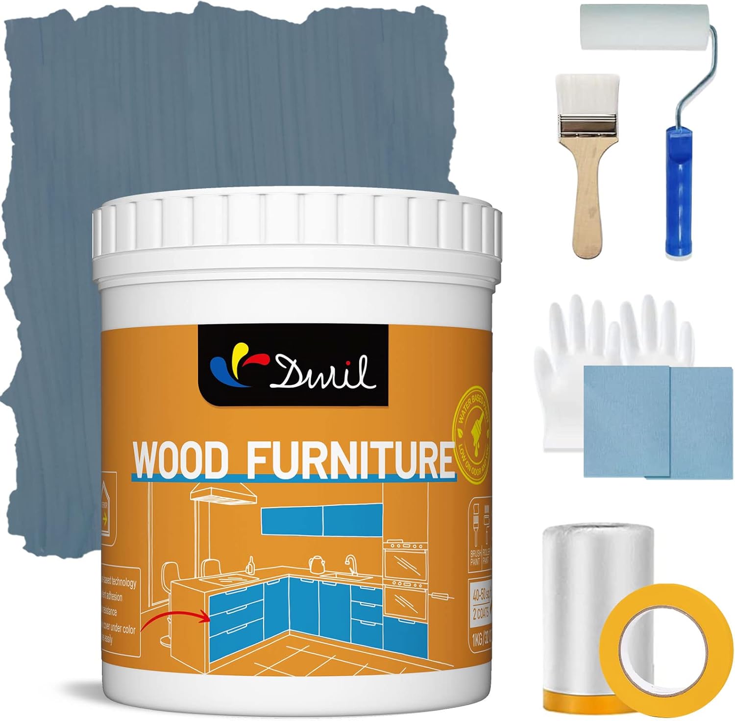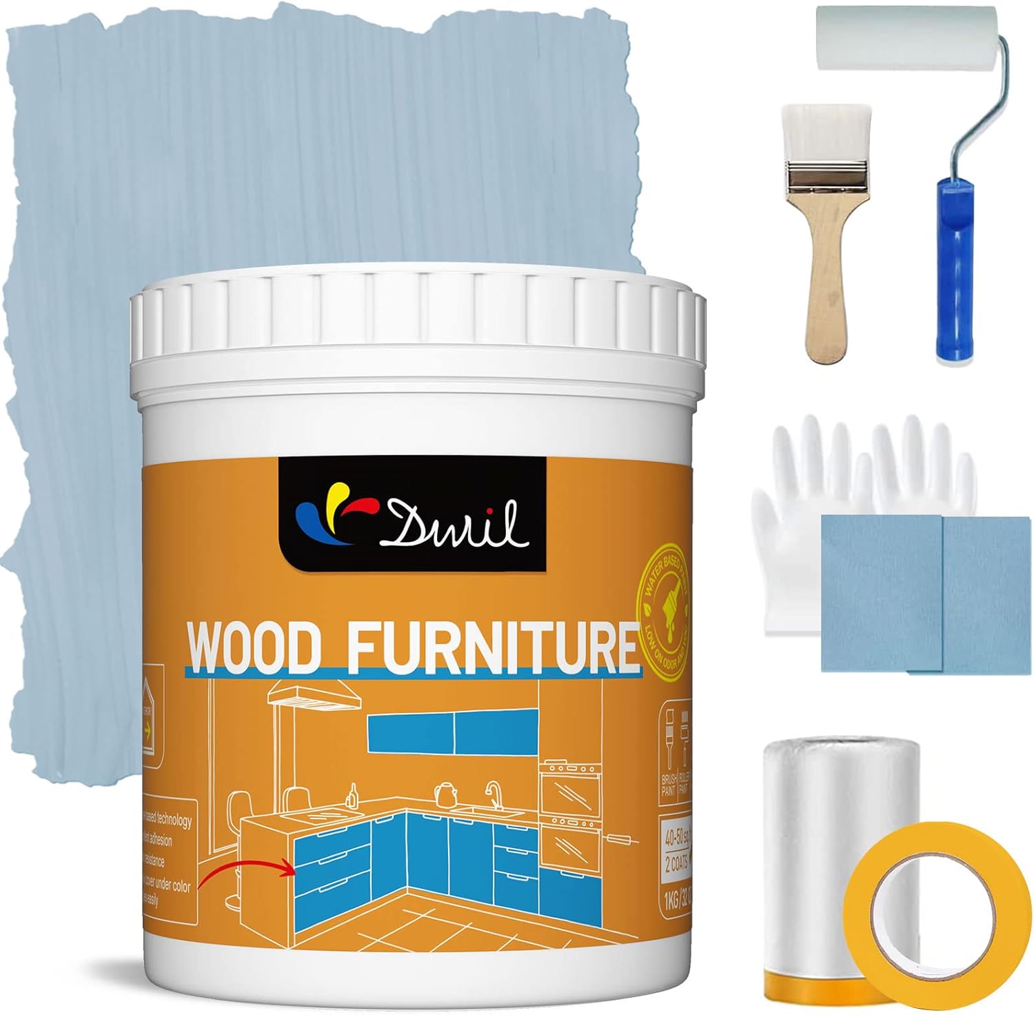 | Included Components | Masking Film * 1; Paint Roller * 1; Brush * 1;, Sandpaper * 2; Gloves * 1; Masking Tape * 1., wood furniture Emulsion 1kg * 1. |
