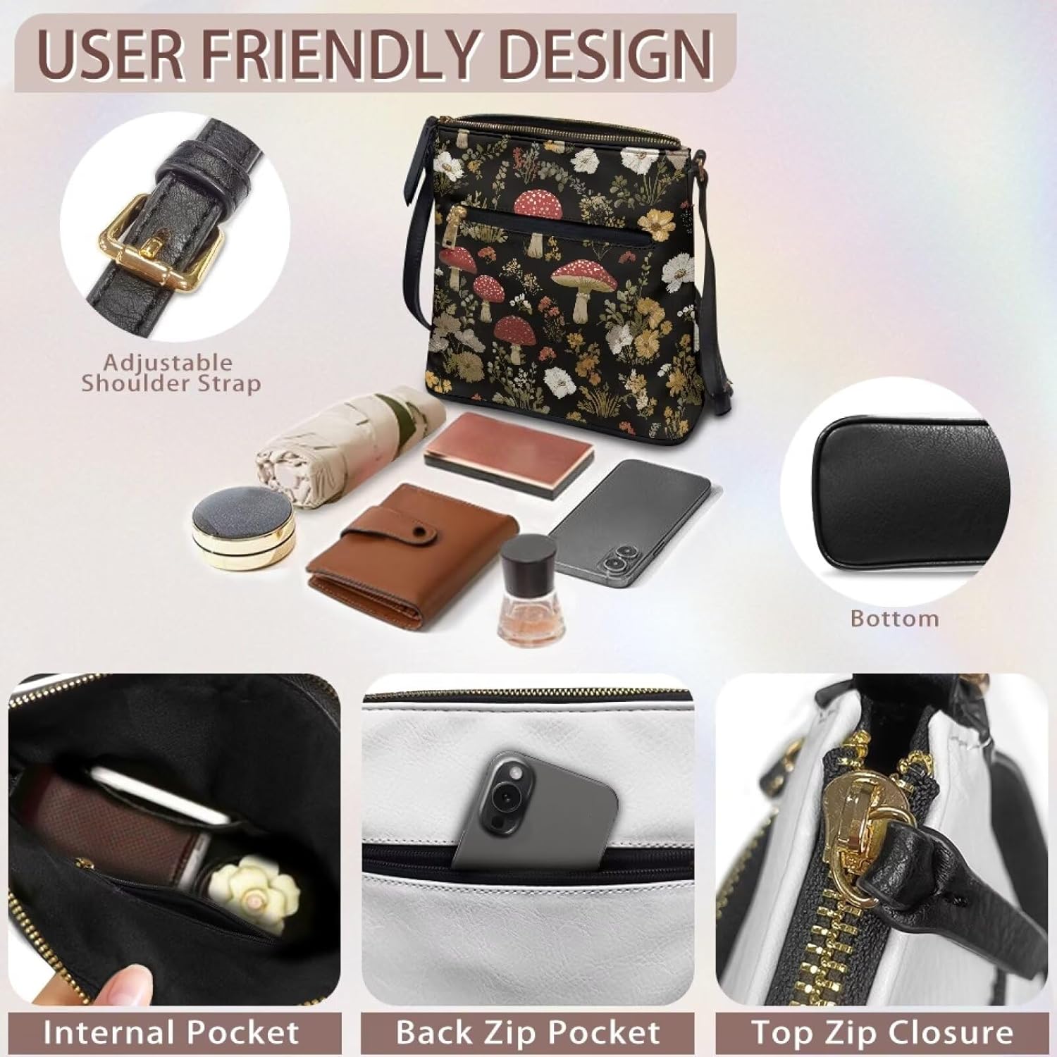 [Product Performance] Our women's shoulder bag is made of high-quality PU material, and the fabric is soft and comfortable. UV printing technology, the texture is delicate and clear, the overall glossy and textured; waterproof material, refusing penetration,so you can go out with confidence during the rainy season, and can effectively protect your items from getting wet.Our bag pays great attention to details, so we have put a lot of effort in the fabric, material and style design; the smooth zipper and professional production process make our bags more exquisite and durable, fashionable and practical.Intimate design: Our shoulder bag pursues comfort and practicality, the internal space structure is clearly divided and the capacity is sufficient, the items can be stored in an orderly manner, and the items are protected from scratches, dust, and the phenomenon of affecting the appearance and use.[Gift] Gift: It can be customized and designed according to your preferences to create a unique experience and show your exclusive taste. It is a perfect birthday gift, Thanksgiving, Christmas and New Year gift for family, friends, and yourself. Customizable, practical and thoughtful, it is a must-have fashion item.