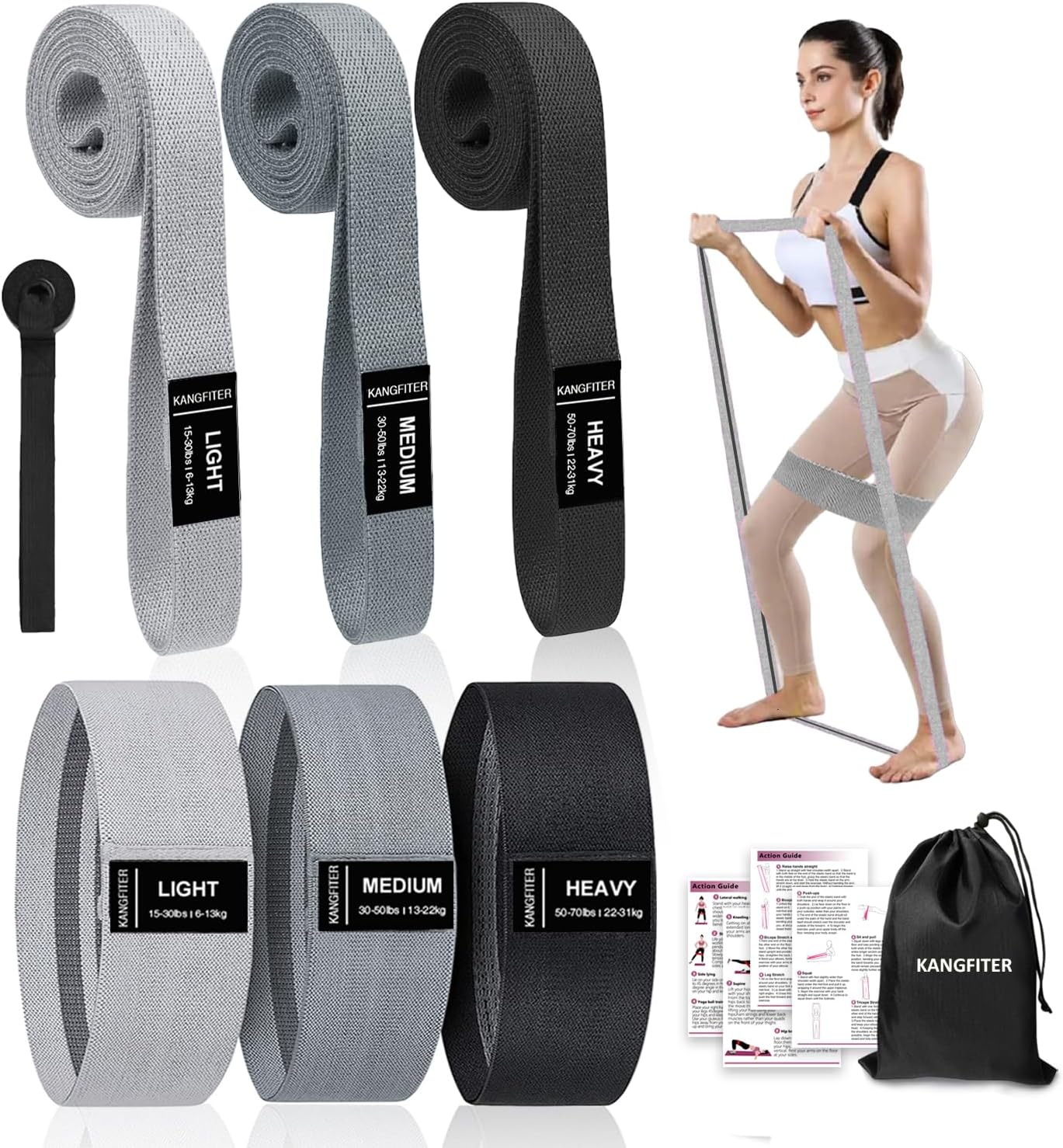 KANGFITER Long and Short Fabric Resistance Bands with Door Anchor, Non-Slip Stretch Booty Bands for Working Out Women & Men, Loop Exercise Elastic Bands for Home Physical Therapy Yoga Pilates