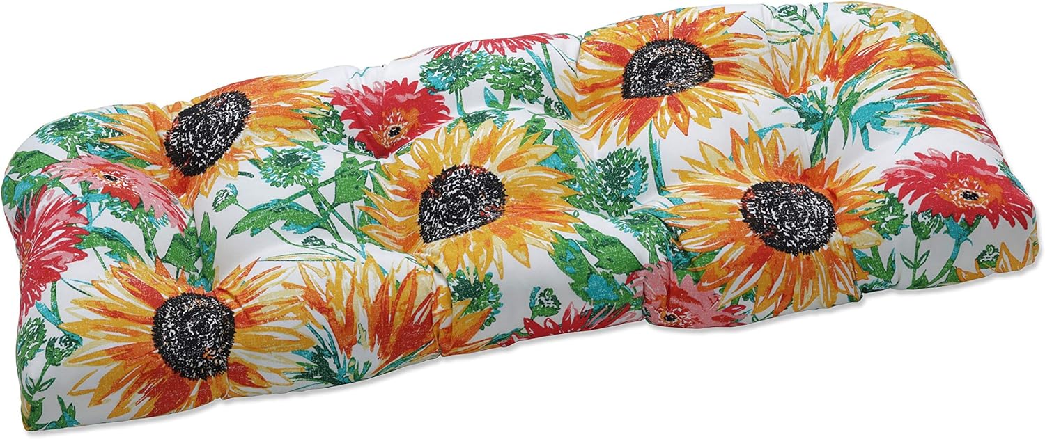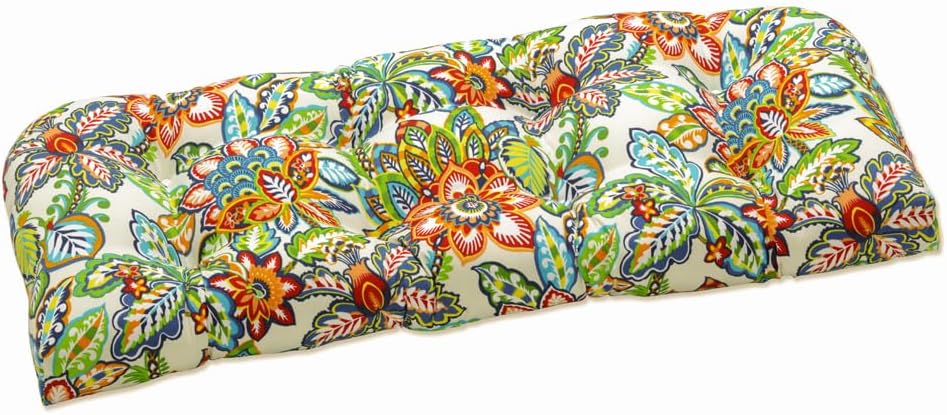 Gorgeous, with shabby chic appeal, the floral watercolor print of this outdoor tufted loveseat cushion is inviting. Flowers in shades of blue, brown, red and gold are set on an off-white linen textured fabric, which is durable and fade resistant. Additional features of this outdoor tufted loveseat cushion include recycled polyester fiber fill and a sewn seam closure. Also suitable for indoor use.