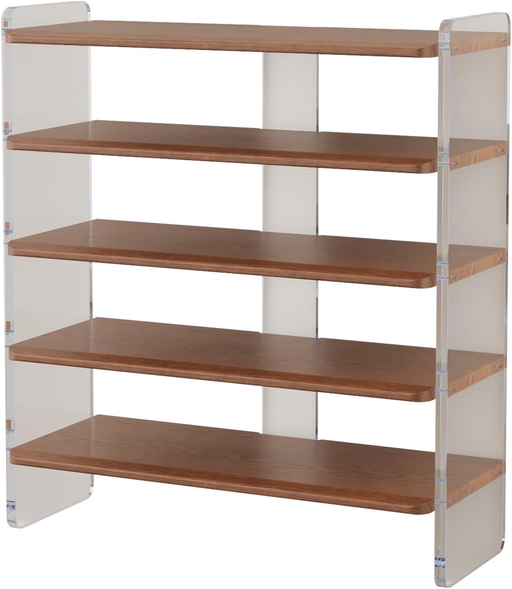 Shoe Rack for Entryway, Solid Wood and Acrylic Structure Shoe Stand, 5-Tier Modern Shoe Shelf, Ideal for Small Spaces, Living Room and Walk-in Closet