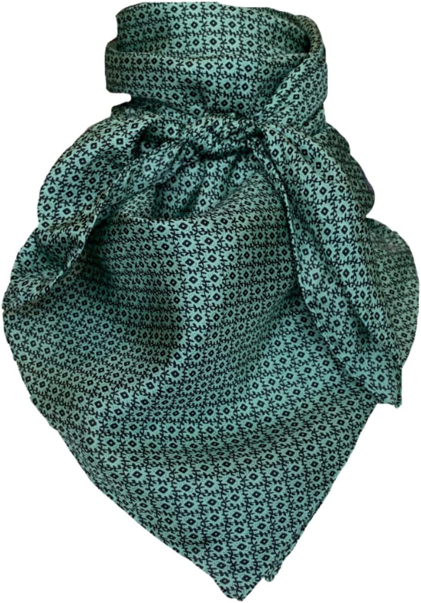 Wyoming Traders calico silk scarves are made from 100% silk with our 8mm weight fabric. Designed to keep you warm in the Winter and sun protecting and cool in the Summer. This listing is for the 34.5” wild rag. We also carry some colors in the XL 42" size, please see our other listings for all of the options.